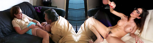 Granny dominates and fucks young lesbian lady