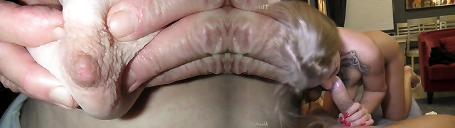 Large milk cans chick has her salacious cleft teased by an aged man