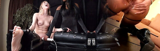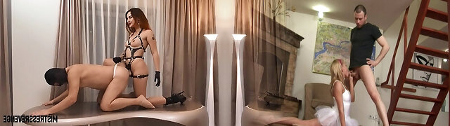 Gorgeous Doms Milk Their Victim And Make Him Eat Cum