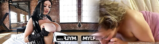 Dominating Milf In Costume Gets Her Thick Tits Adorned In Cum