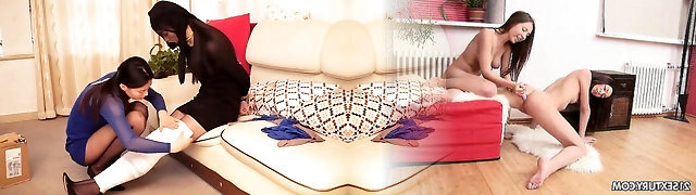 BDSM fetish video with Angie Lynx and Virgin Kiss having a three way