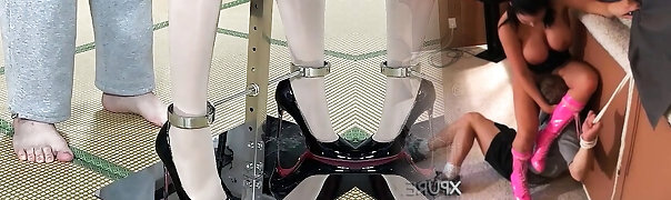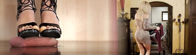 His very first CBT trampling under Heelyqueen Leylas ebony high heels - he truly deserves!