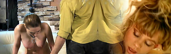 2 Femdoms With Maid Make Him Hard in Spike Ring