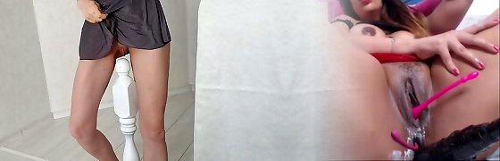 Kinky and filthy superslut with super-cute ass plays with her holes