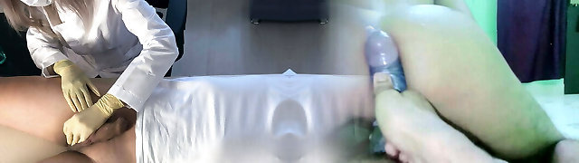 Teen "doctor" in a medical gown and gloves, sounding urethra sans lube