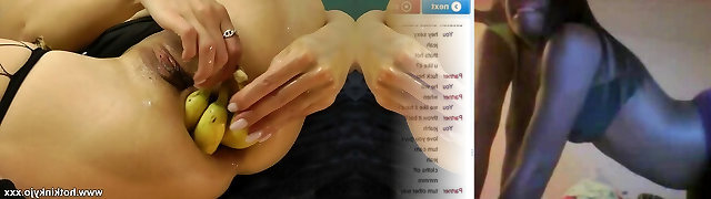 Hotkinkyjo in black fishnet stocking fuck bananas with her booty & anal prolapse
