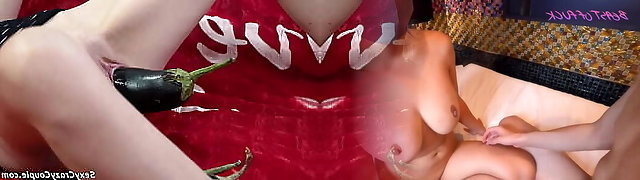 Eggplant in the pussy and cucumber in the culo