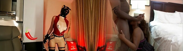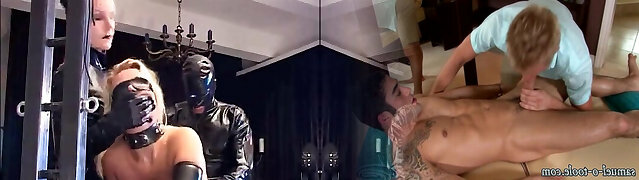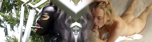 Miss Maskerade Latex couple blowjob and bondage in full love glove with sir and slave