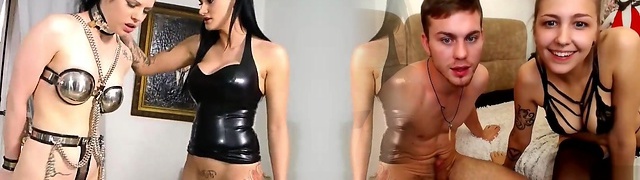 Female Domination fetish mistresses fuck bdsm loser with strapon