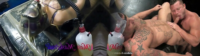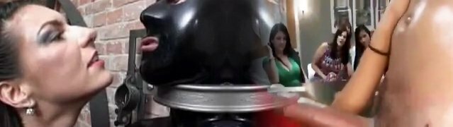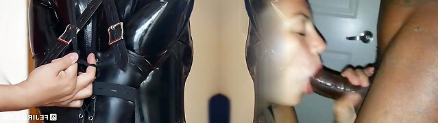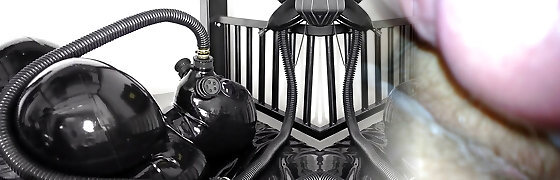 Latex Victim Woman Gives Blowjob With Breath Control Gasmask + Urine Inhaler