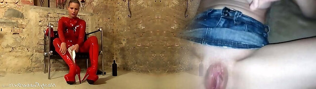 FemDom Latex Queen RubberDoll Fucks Blonde Slave!