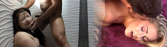 Big tall monster domme dominate her poor small sub in basement.