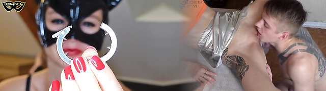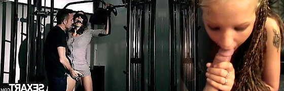Blonde put Dick Cell Restrain Bondage, Sucks and Pulls guy's Balls, Cock Fetish