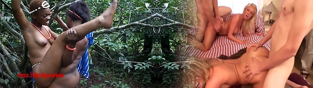 Vintage trio with two enslaved babes