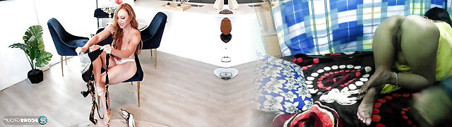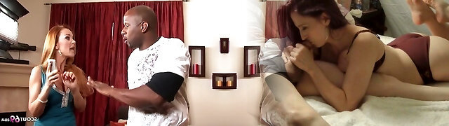 Hot like fire black-haired MILF with big baps Janet Mason is gonna give solid foot job to black man