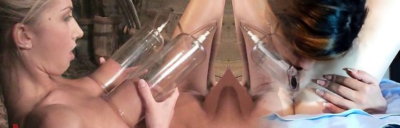 Blonde and brunette Dominatrix severe brutal thighs flagellating