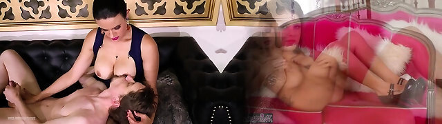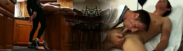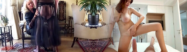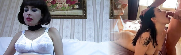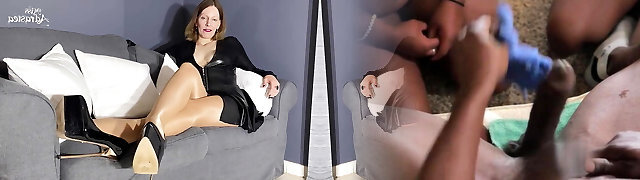 Busty Brunette Mistress Faps Her Slaves Dick And Makes Him Slurp the Sperm From Her Nylons After