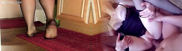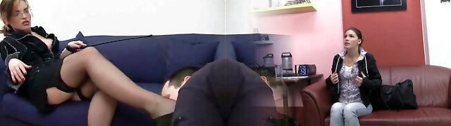 Red-hot girl in nylons has him sucking on her sexy toes