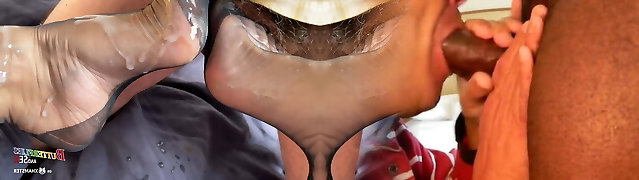 Doll in ebony nylon socks gave me handjob in oil and let me cum on her feet