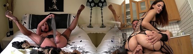 MonicaMilf and Samson is doing a double nylon fuck