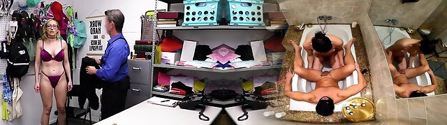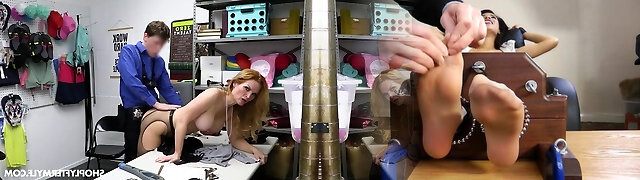 Red-haired shoplifter Aria Carson gets penalized in the security guard's office