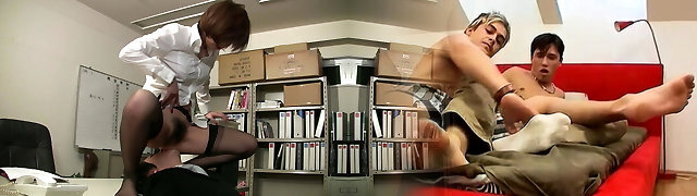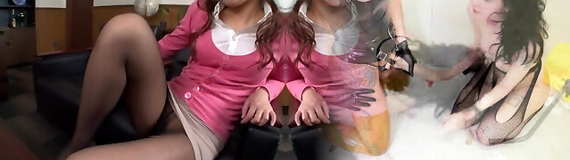 Japanese uncensored! Perv Japanese Nympho makes her coworker at the office into her orgy object!
