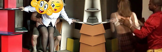 Senior German is extremely horny for his curvy ebony assistant