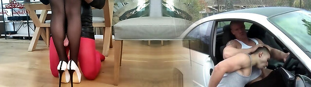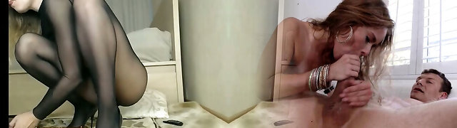 Damsel Domination Handjob and Legs Fuck in Pantyhose and High Heels