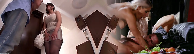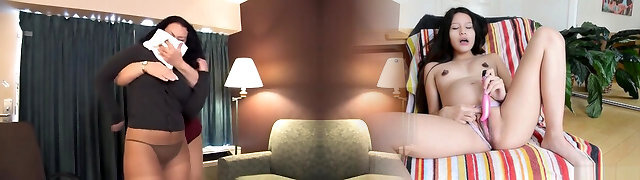 My stepsister asks me for an opinion on her clothes and goes after me with her sumptuous fishnet stocking