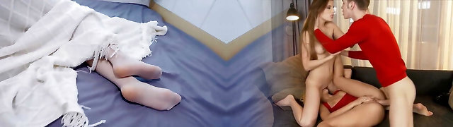 Blonde teen girl with perfect small soles fucked through shiny tan pantyhose screams as she gets fucked by huge cock POV