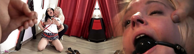 Splooging sluts Monika Fox & ger girlfriend stretched out in BDSM