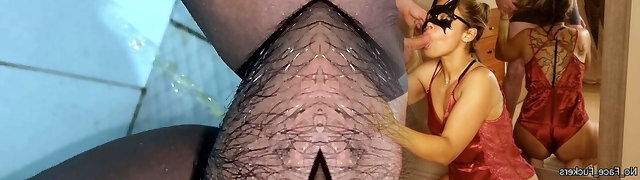 Naughty piss orgy with 3 girls and several fans! 3 piss horny poons swallow men and female piss!