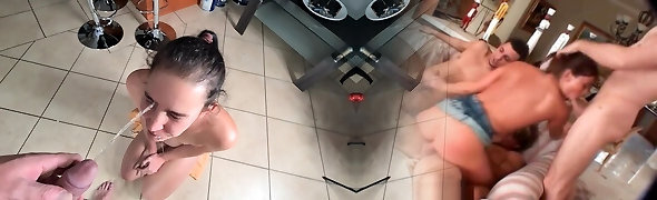 Brutal 3 Way With Deepthroat, Pissing And Cumshots