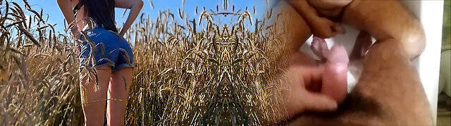 Extreme sex in the field. The beauty swears and moans loudly. Point Of View
