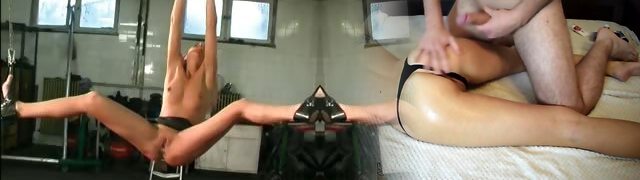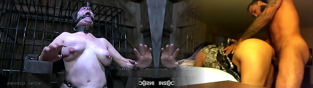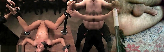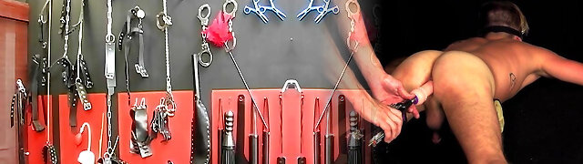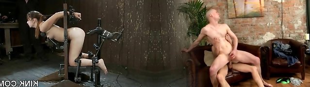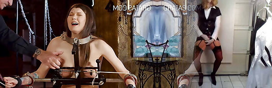 Nasty brunette girl with a fucktoy in her bum punished by her master