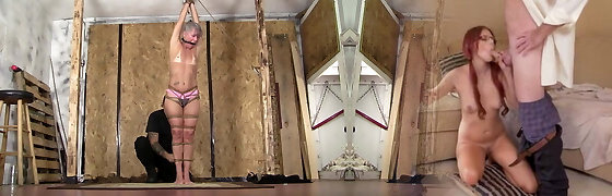 Pale whore is tied up and punished in bdsm lovemaking scene