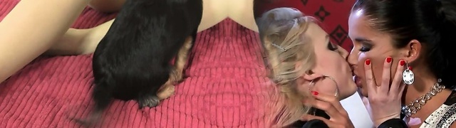 Lesbo on a leash licks super hot dominas pussy in bdsm action in hd