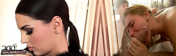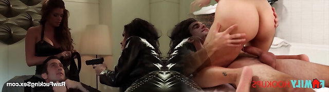 The two hotties predominate the crime boss and they stripped him until the veiny cock of him popped out.