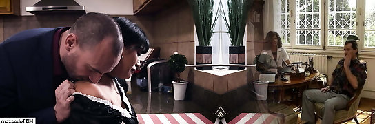 Predominant Brunette Maid Having Fun with Her Submissive Boss