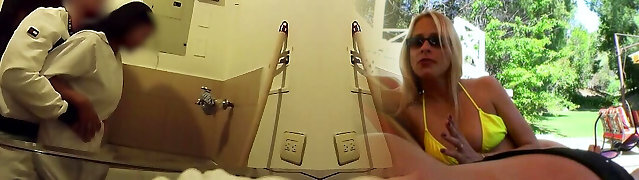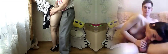 Teen babysitter agrees to have DDLG relationship with bosses and cum on her pants.The petite towheaded sucks the milf big orbs