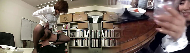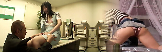 Japanese uncensored! Pervert Japanese Nympho makes her coworker at the office into her sex object!