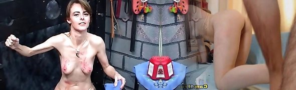 Bony teen slave bondage dildo blowjob fucked facial