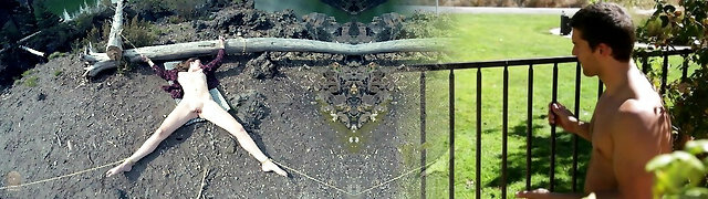 Roped up, used, and cummed on outdoors PREVIEW