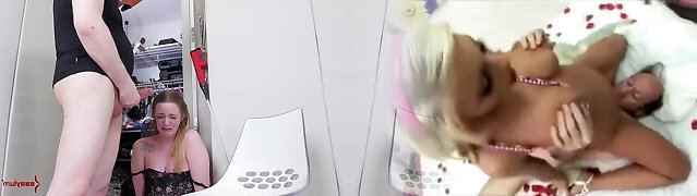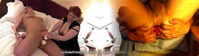 Horny MILF sucks cock and balls before torturing her hubby's bone and balls