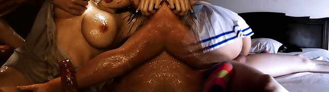 First-timer big assed babe Claire P finally enjoys her 1st GANGBANG