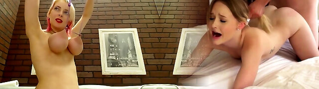 Cutie Kenzie Taylor gets disciplined and takes cumshots on tied up boobs