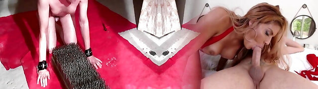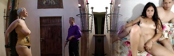 Mesmerizing dirty brunette gets punished by horny fellow and ginger slut
