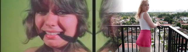Kinky strapped up vintage brown-haired girlie gets mouth fucked on the floor