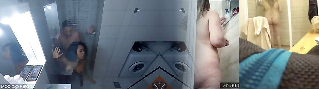 Housewife does makeup in the douche. The stranger drills the lady. Cam 1