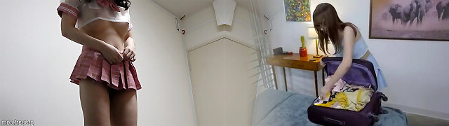 Japanese girl in extreme miniskirt takes off her clothes and gets nude